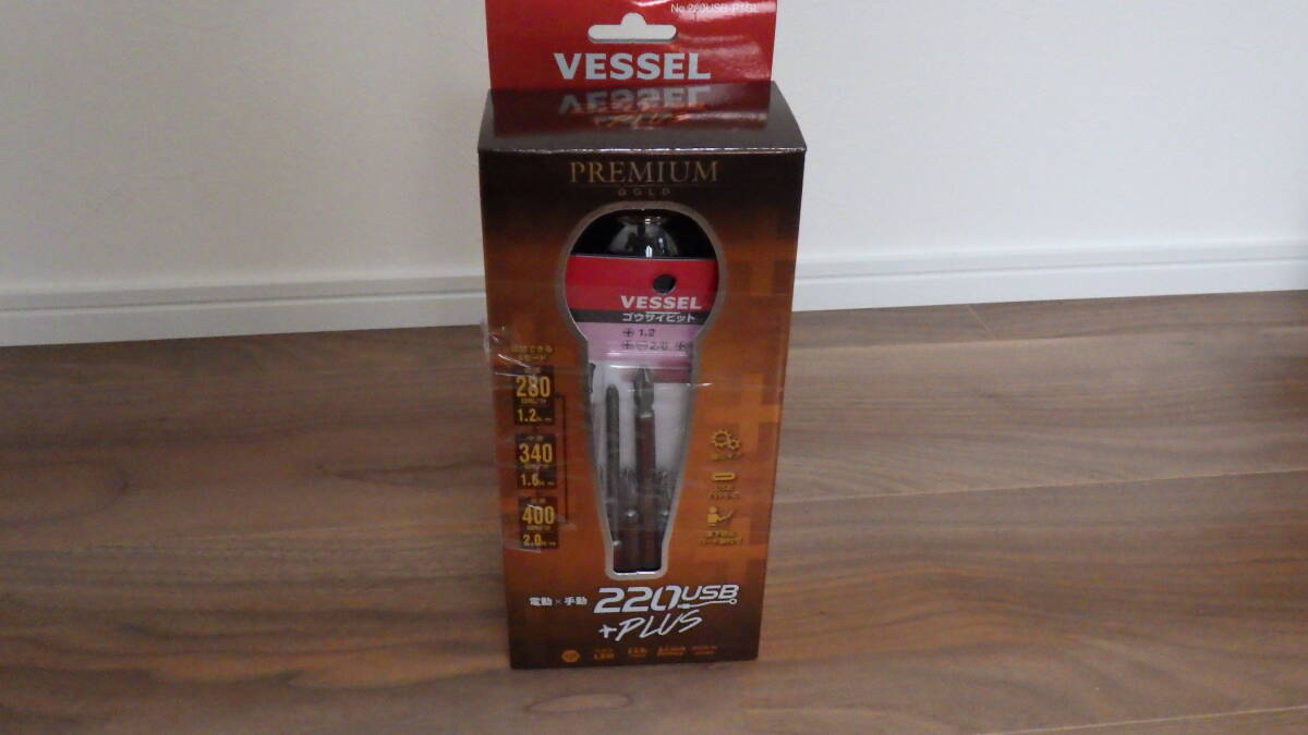 > 【VESSEL電動ドライバー220USB-P1GL】 電ドラボール PREMIUM GOLD 220USB PLUS 剛彩ビット 5本組 新品 未開封