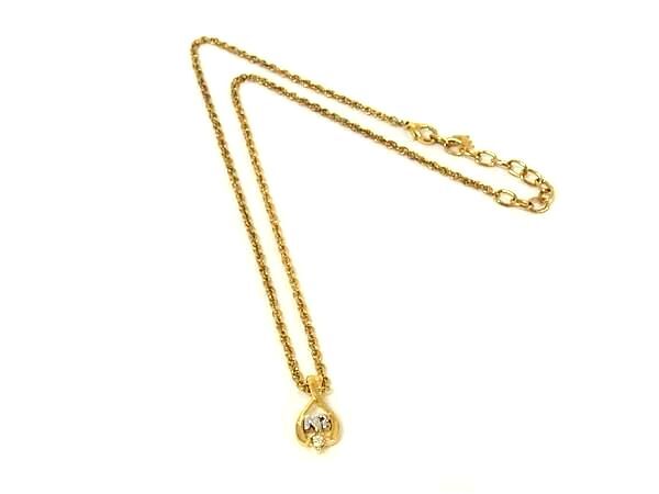 - ■極美品■ NINA RICCI ニナリッチ ロゴモチーフ ラインストーン ネックレス ペンダント アクセサリー レディース ゴールド系 DI0105