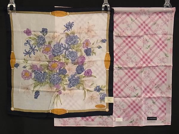 > ■新品同様■ BURBERRY バーバリー フラワー柄 チェック柄 ハンカチ ハンカチーフ 2点セット まとめ売り DI3938