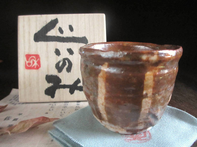 - ぐい呑み 織部 幾何文 ぐい呑み(共箱) 佐藤和次 S-714