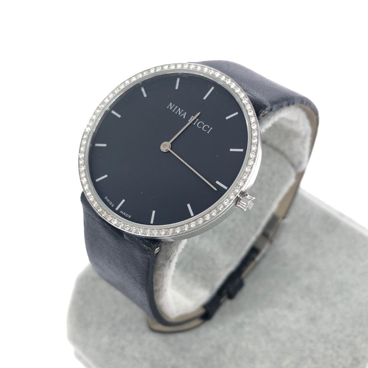 > ◆NINA RICCI ニナリッチ 腕時計 クォーツ ラインストーン/SS×レザー N00413 ブラック/シルバーカラー レディース