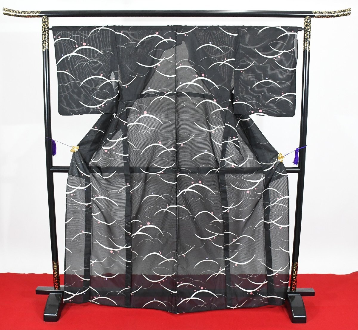 - 小紋 着物 洗える着物 夏着物 絽 水玉に芝文 身丈159cm 裄丈66.5cm ★ kb-7336 桜庭呉服店