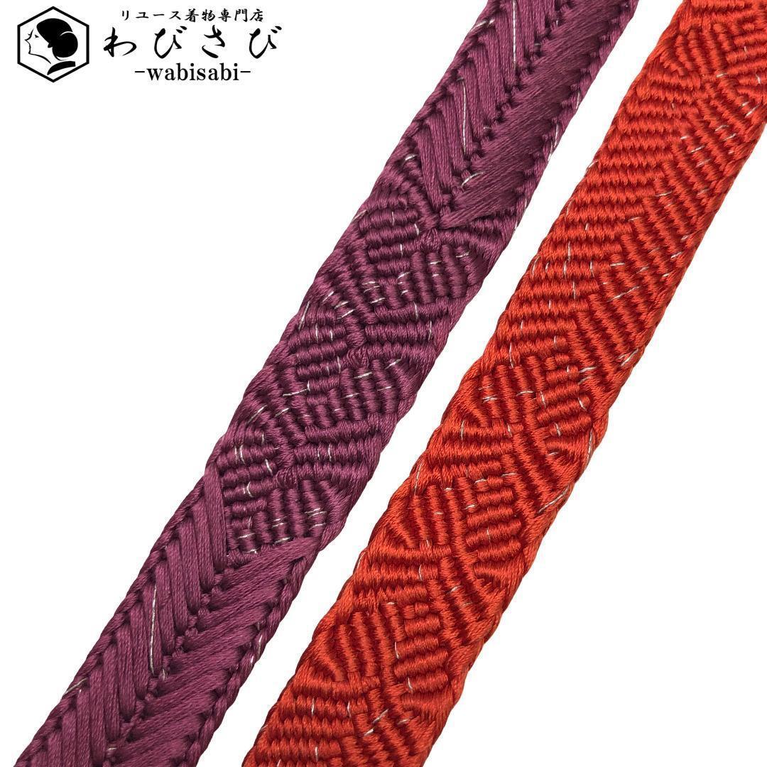 > 和装小物 帯締め 正絹 唐組 平組紐 組紐 織葡萄色 銀糸 C-6592 着物 きもの kimono 和服 和装 中古 リサイクル着物 【送料無料】
