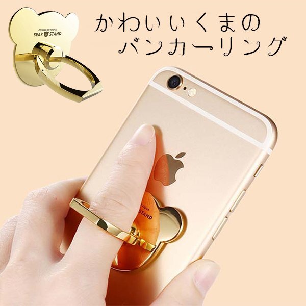 - 送料無料 かわいいくまのバンカーリング ゴールド (ツヤ有り) / リング スタンド ホールドリング スマホ スマートフォン iphone Android