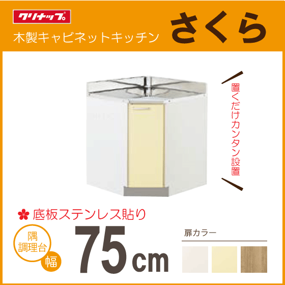 > 隅調理台 クリナップ さくら 75cm TAT-75CC TAY-75CC T4B-75CC 750mm★