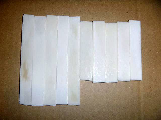 - [アコギ][サドル]未加工牛骨ナット&サドル5セット10本 角度付ヘッド用5本+サドル用(角度無しヘッド用ナット)5本