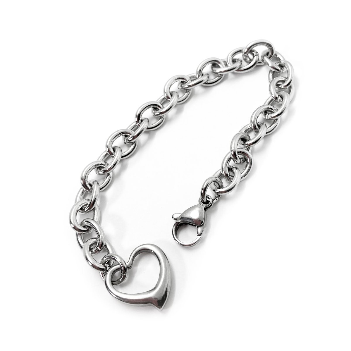 - 幅8mm 約19cm 太め小豆チェーン ステンレスチェーン ハートチャームブレスレット SB106