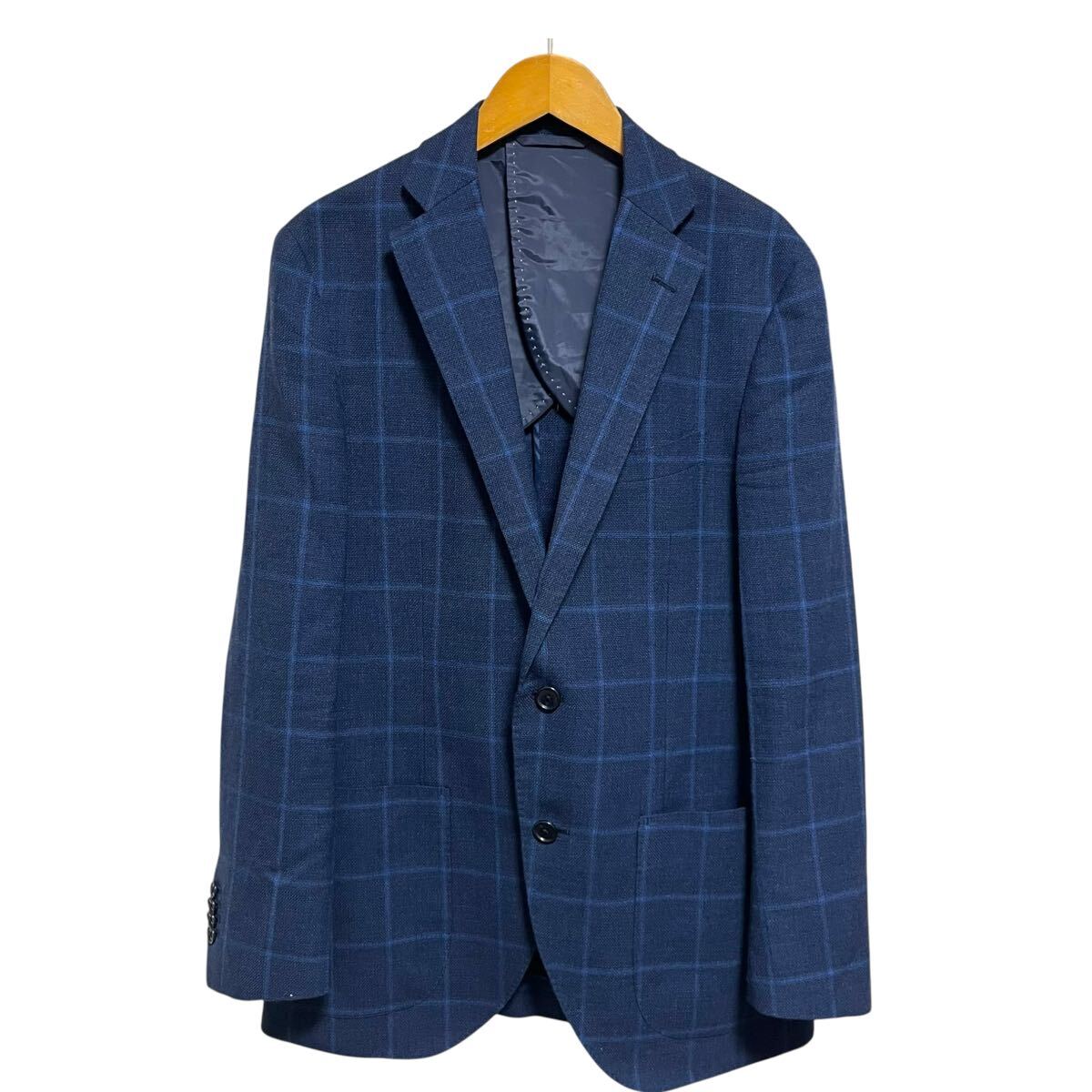 > ※SU2 WE SUIT YOU (スーツカンパニー) 2Bテーラードジャケット ネイビー ウィンドウペンチェック COOL MAX パッチポケット メンズL相当