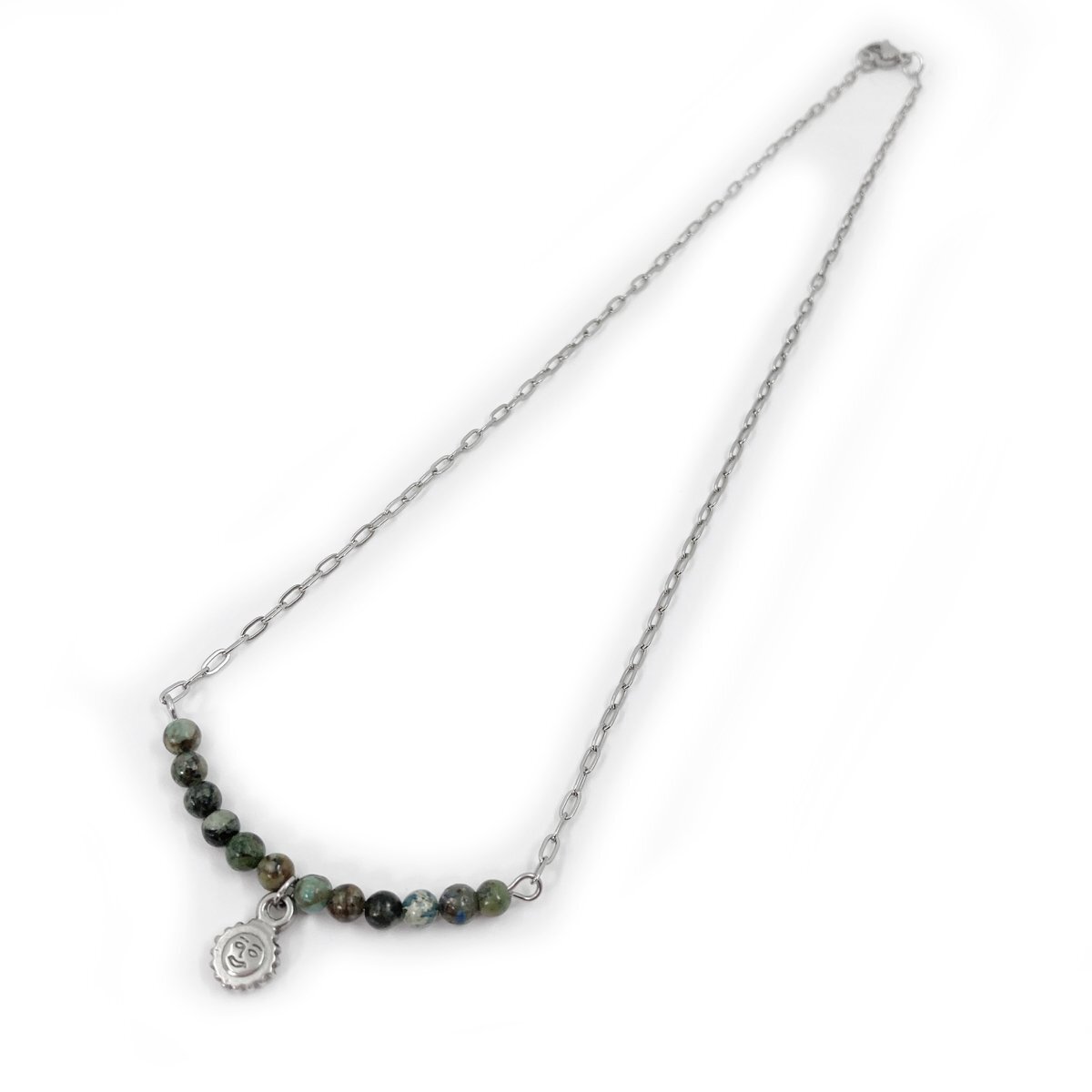 - ステンレスパワーストーン ネックレス 全長約40cm BN63 アフリカンターコイズ&スマイルチャーム