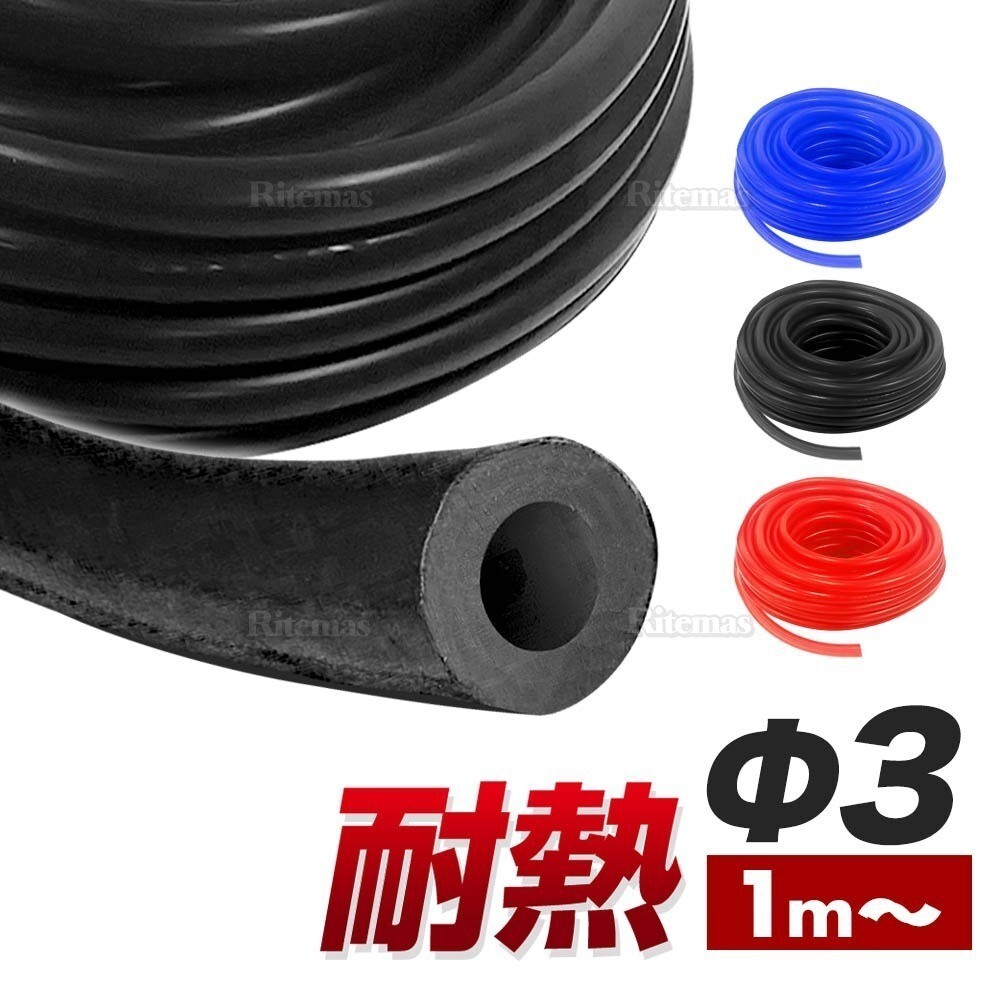 > シリコン (3mm) 黒 シリコンホース 耐熱 汎用 内径3ミリ Φ3 バキュームホース エンジンホース シリコンチューブ ラジエターホース