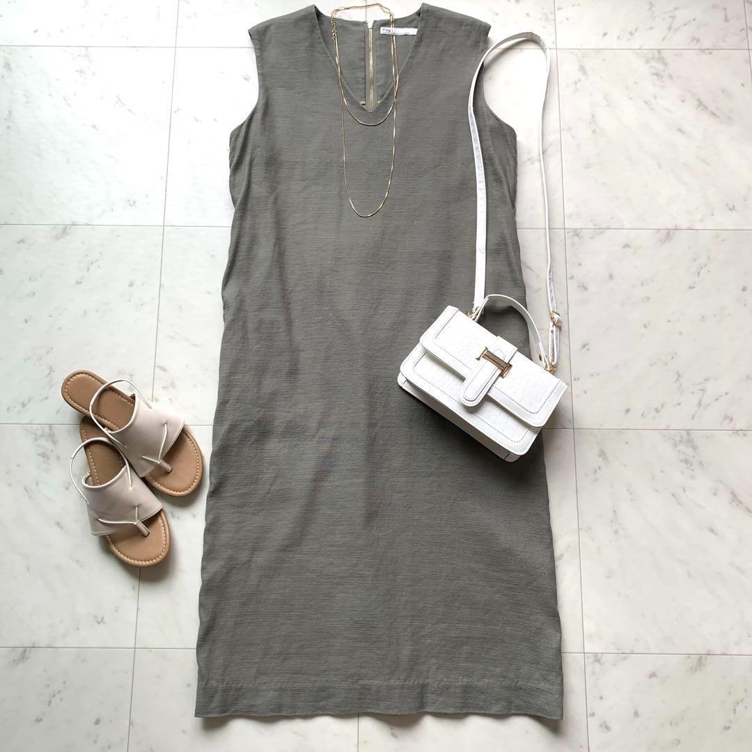 - Plage プラージュ ロングワンピース ノースリーブワンピース Vネック タイト コットン リネン 麻 綿 カーキ 日本製 MADE IN JAPAN