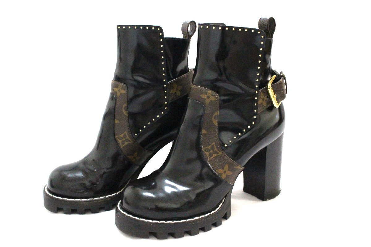 - ルイヴィトン LOUISVUITTON スタートレイルライン スタッズ ベルト ショートブーツ モノグラム [37] D1015/T45