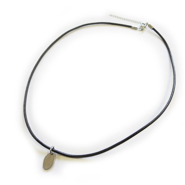 - 革紐 タグチョーカー ネックレス ダークブラウン 長さ約45cm(40cm+5cm)