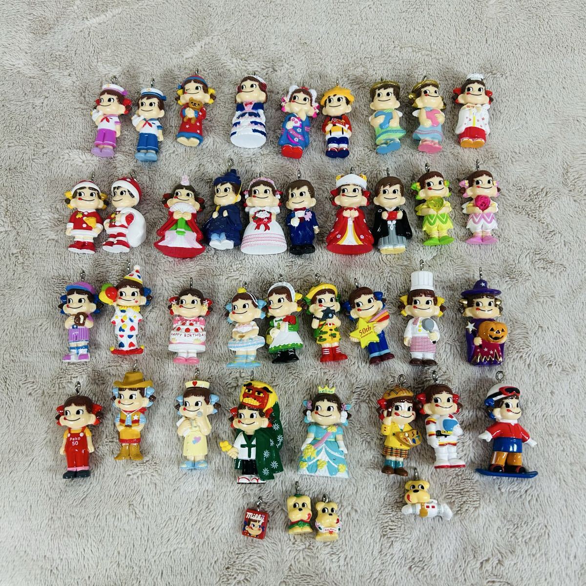 - 不二家 ペコちゃん ポコちゃん当時物 キーホルダー レトロ フィギュア まとめ売り 36体+4