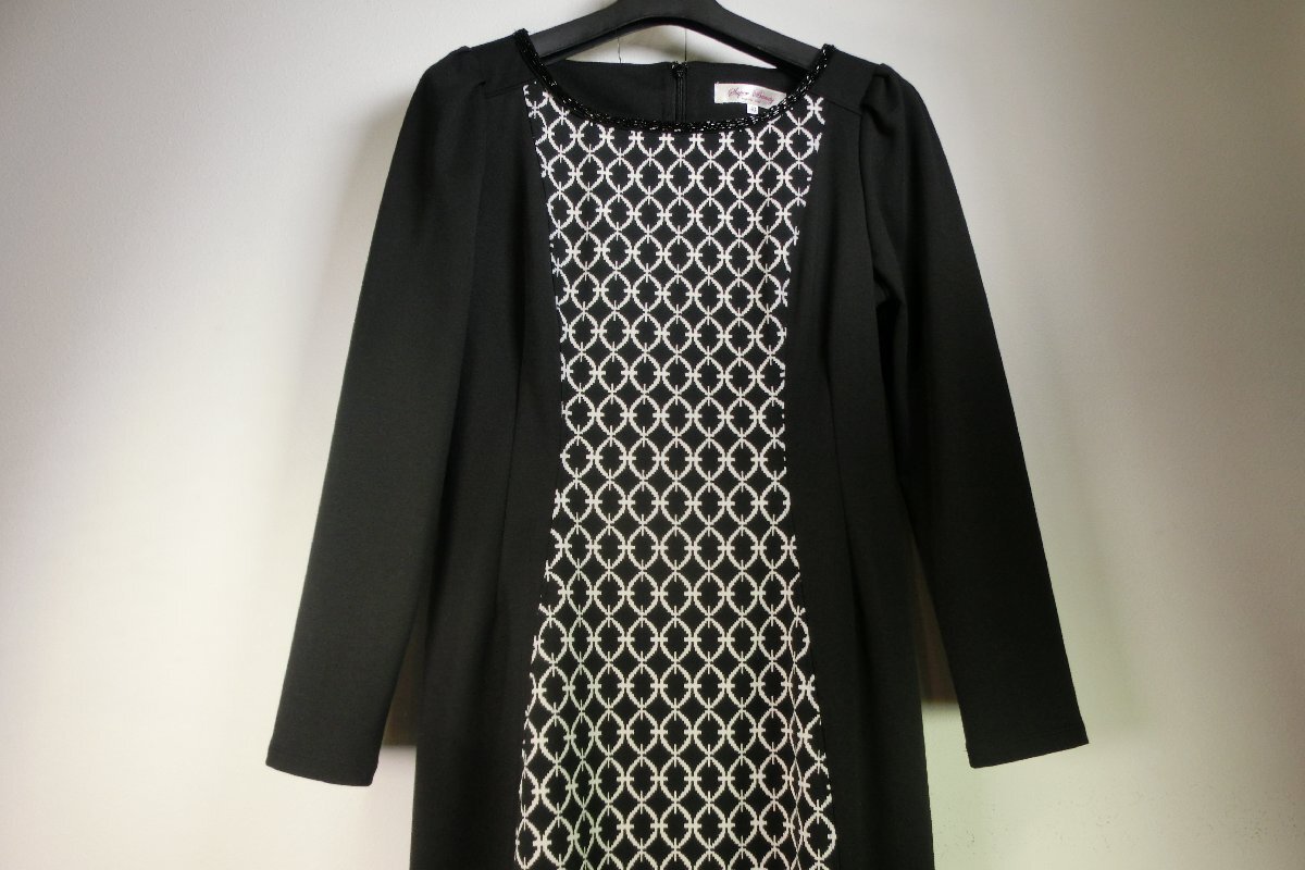 > ♪美品 ★Super Beauty/スーパービューティ(40)★黒・切り替え柄ビーズデザイン長袖チュニックワンピース
