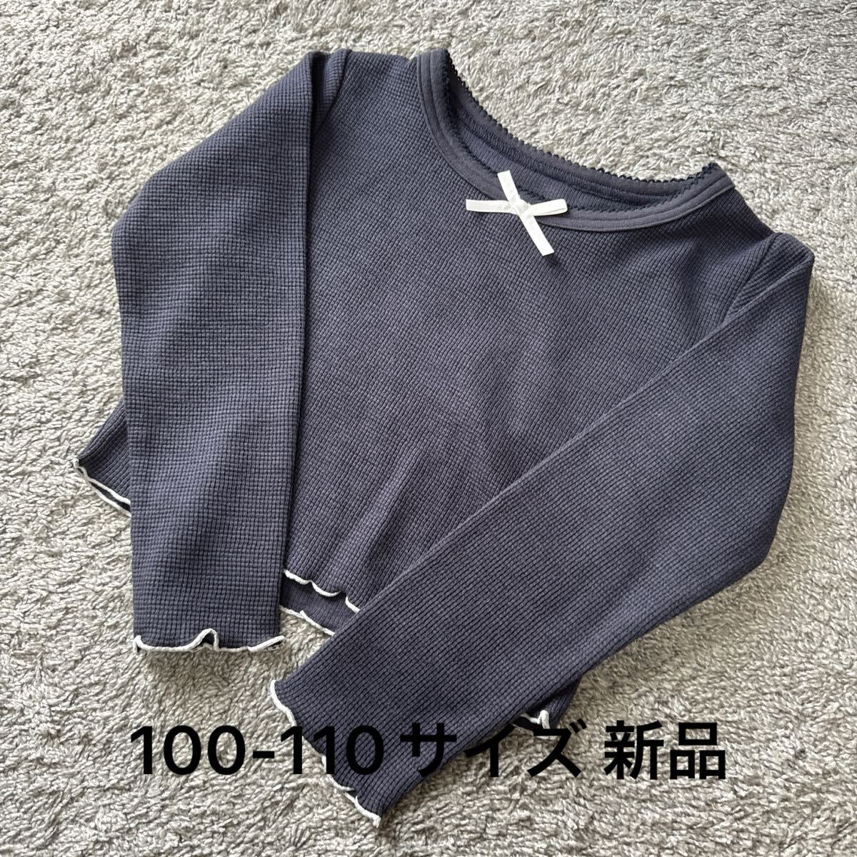 > こども服 ネックリボンメロウフリル長袖Tシャツ紺100-110★ゆうパケット配送可能★新品20