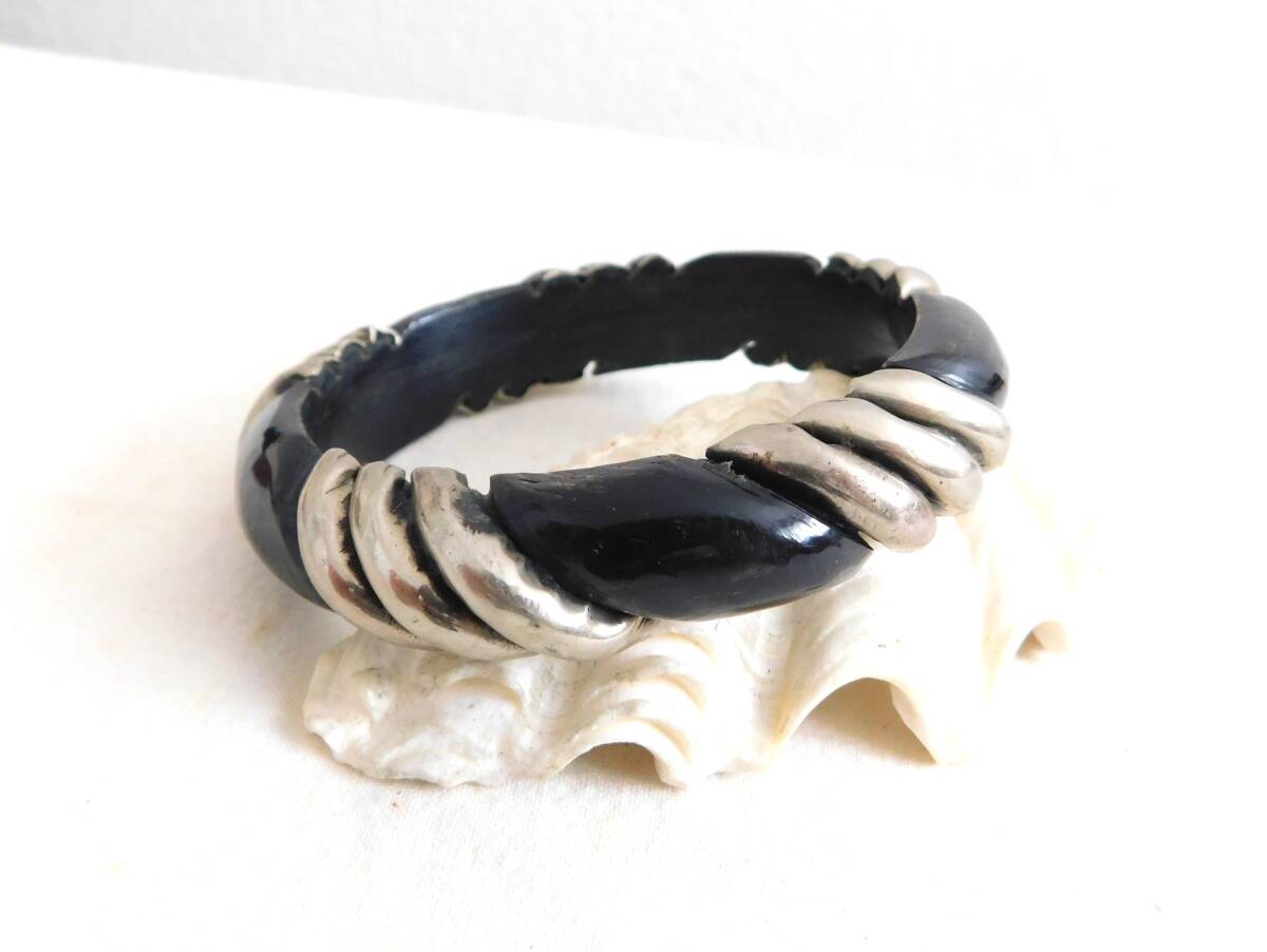 - ヴィンテージバングル 天然素材? 存在感あるツートンバングル シルバーカラー ビンテージ 存在感あるバングル