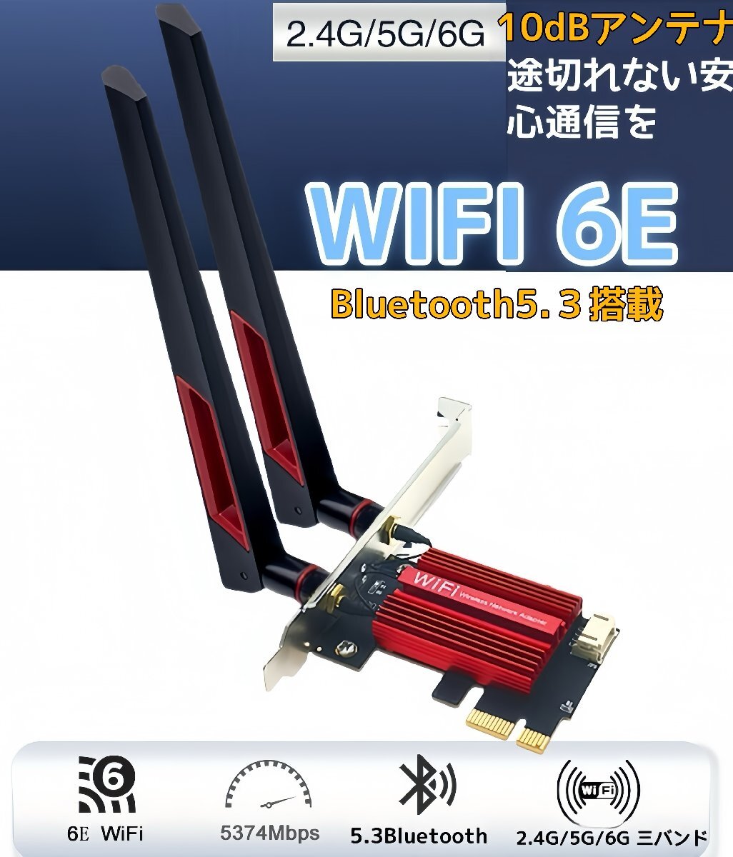 - Wi-Fi6E Wi-Fiカード 無線LANカード Bluetooth 5.3 PCI-E ブルートゥース増設 Bluetooth WIFI6E WiFi/Bluetoothコンボカード