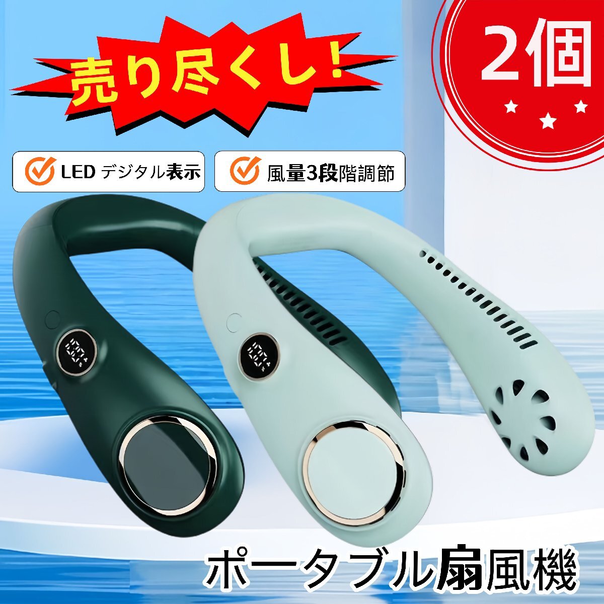 - 2個 最新 DCモーター使用 騒音対策 ネッククーラー ネックファン fan ウェアラブル 携帯 ハンディ 首かけ扇風機