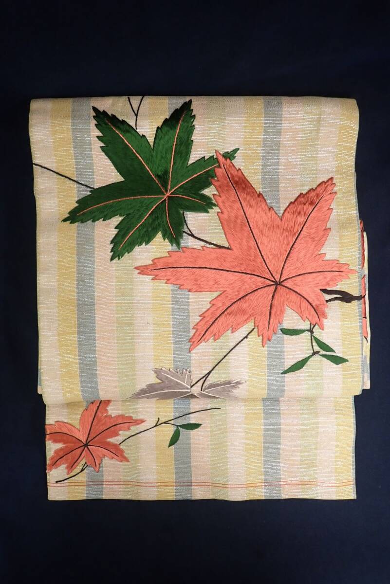 > ■帯55 アンティーク 名古屋帯 日本刺繍 紅葉 リメイク■和装品/和装小物/消費税0円