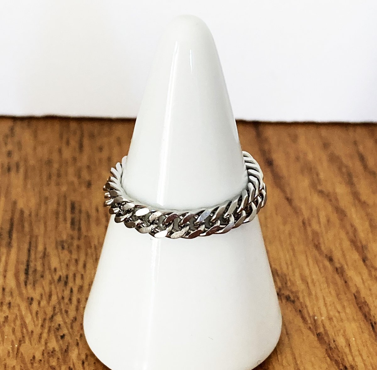 - 5号 チェーンリング/指輪 ステンレスチェーンリング ダブル喜平4面カット 約3.8mm