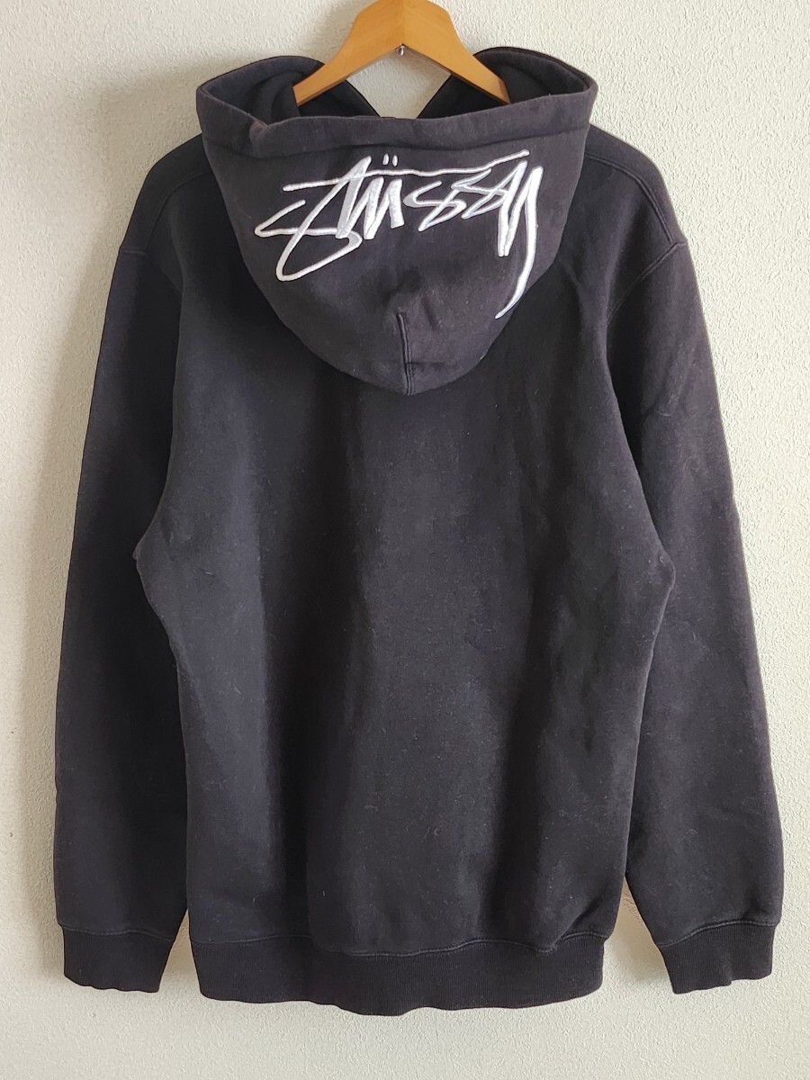 - ステューシーstussyパーカーフーディー刺繍ブラック黒L