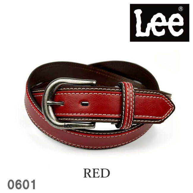 - レッド Lee リー PUレザー レイヤードベルト 幅3.5 合成皮革 0120601