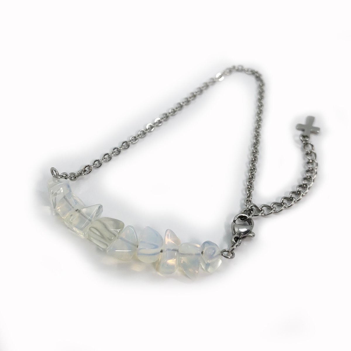 > ステンレスチェーン アンクレット オブシディアンオパール 平小豆チェーン幅約2.5mm 25cm(21cm+4cmアジャスター) GN39