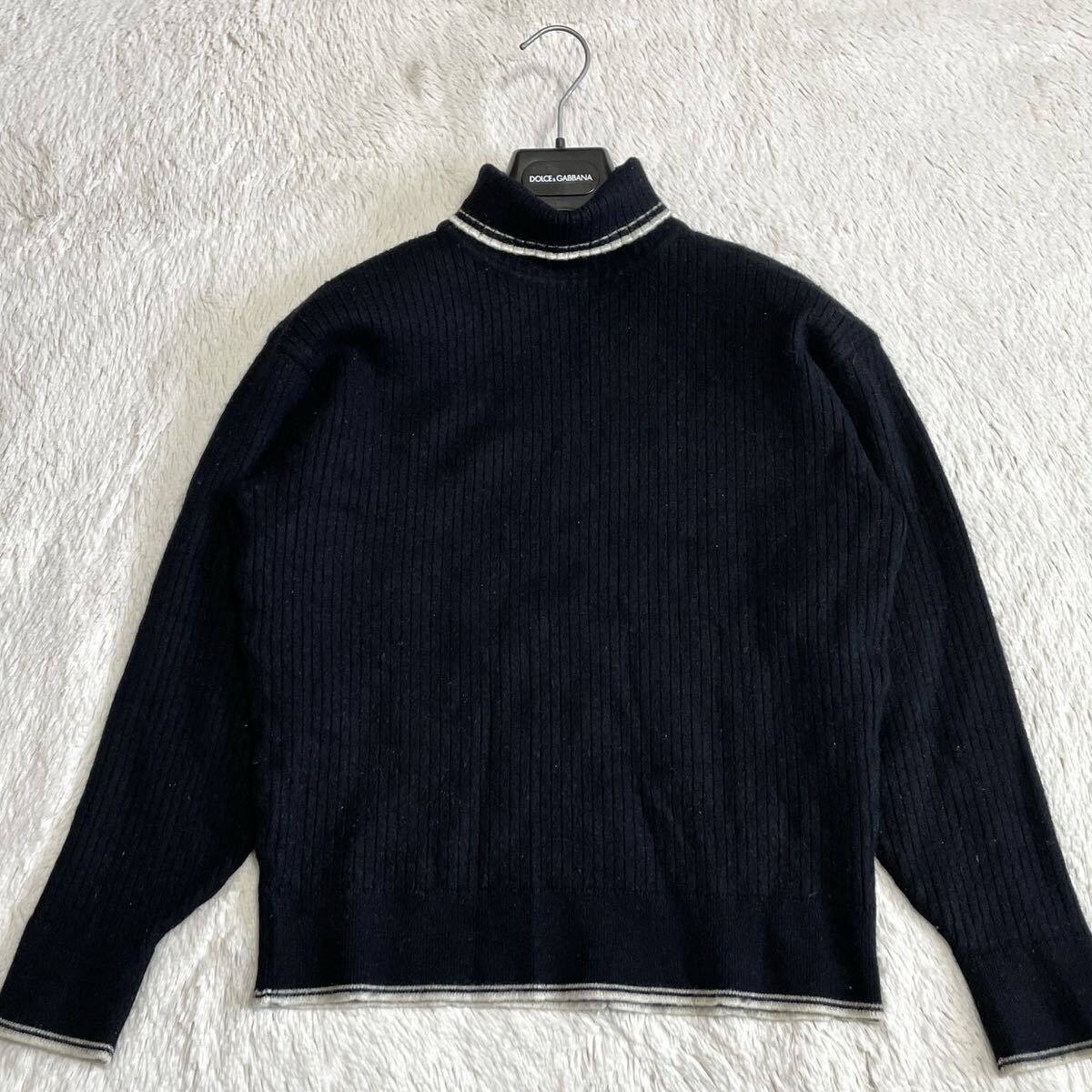 > 希少 Christian Dior MONSIEUR Lサイズ ハイネック 長袖 ニット メンズ タートルネック セーター バイカラー 黒 白 クリスチャンディオール
