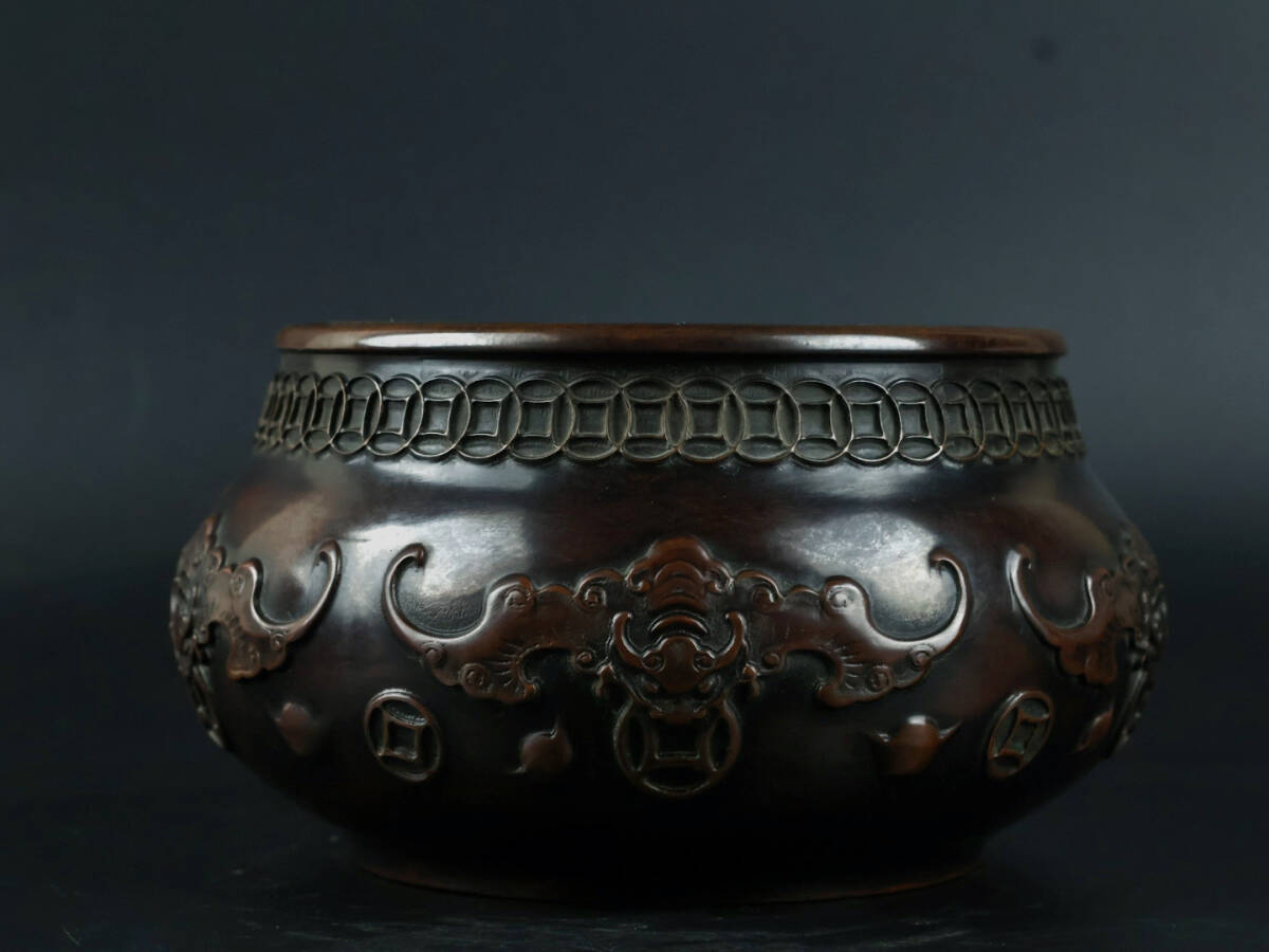 - 『館蔵珍品 紫銅製 浮彫 香爐 置物 賞物』稀少珍蔵品 古賞物 貴重物品 収蔵品 中国古美術 時代物 古董品
