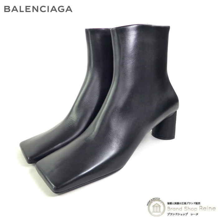 - バレンシアガ (BALENCIAGA) CARRERA LUX レザー ブーツ サイドジップ スクエアトゥ 623924 #37.5 ブラック(新品同様)中古