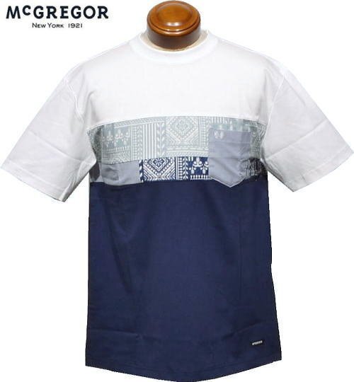 > 【アイボリー M】 マクレガー Tシャツ メンズ 111724702 手洗い可 布帛素材部分使い クルーネックTシャツ McGREGOR