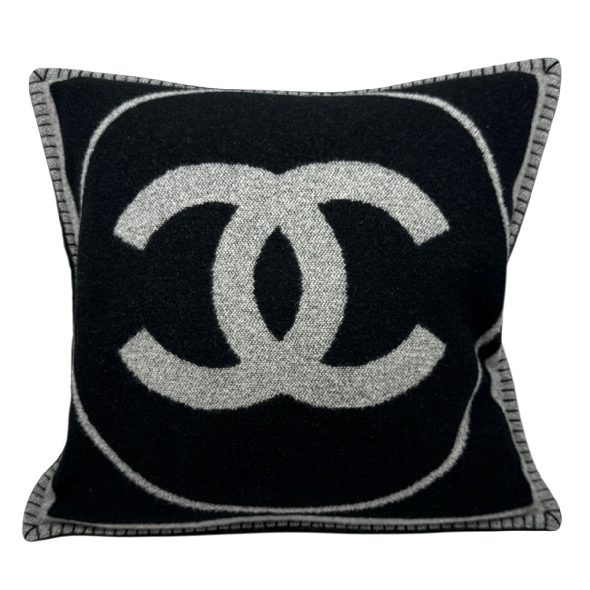 - シャネル クッション ココマーク スコットランド製 カシミヤ混 ブラック×グレー 25J10