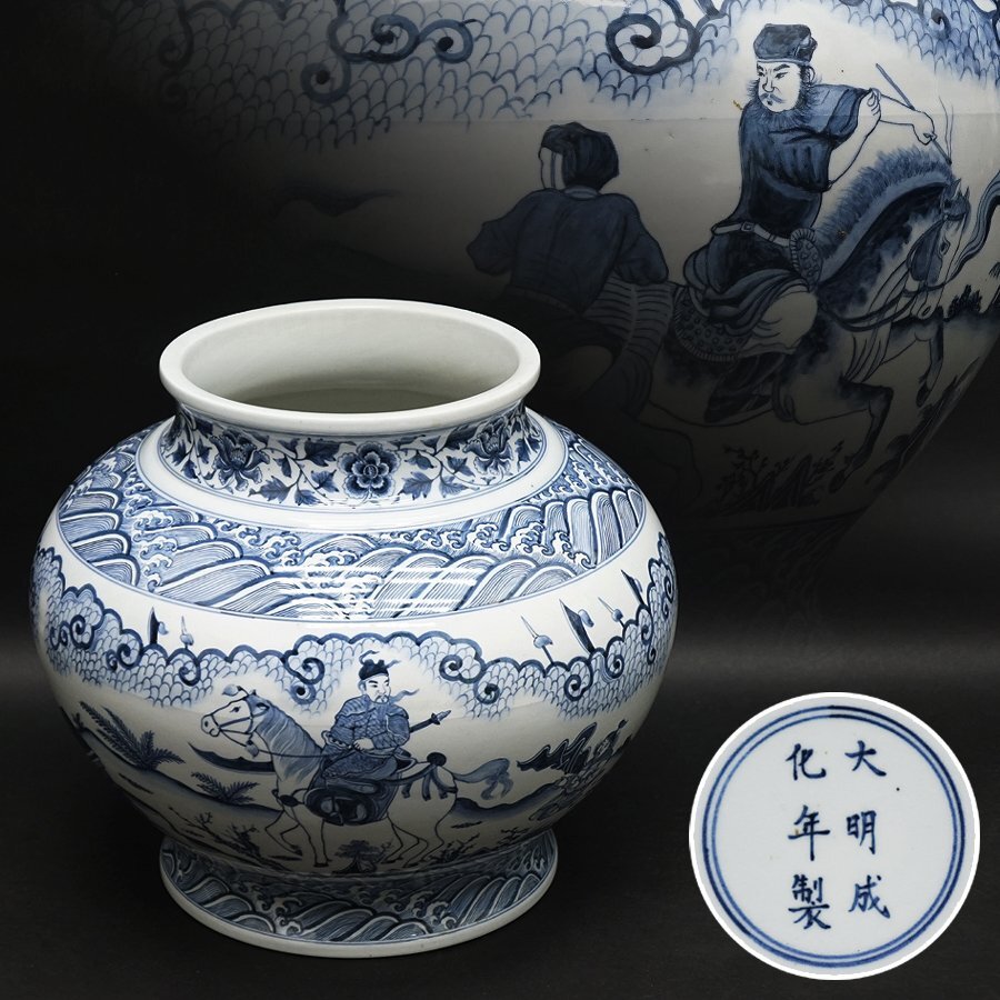 - 中国美術 中国古玩 染付花瓶 大明成化年製銘 特大 唐物 花器 華道具 置物 壷 時代 骨董 煎茶道具 古美術品