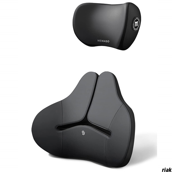 - 【低反発素材で体圧を分散し、快適な座り心地】 腰クッション ランバーサポート ネックピロー 低反発 車 オフィス 姿勢サポート ブラック