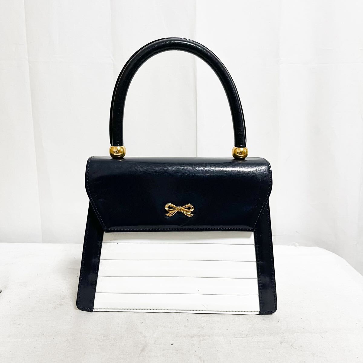 - 和858★ HANAE MORI ハナエモリ ハンドバッグ ミニバッグ パーティー オケージョン ネイビー ホワイト レディース