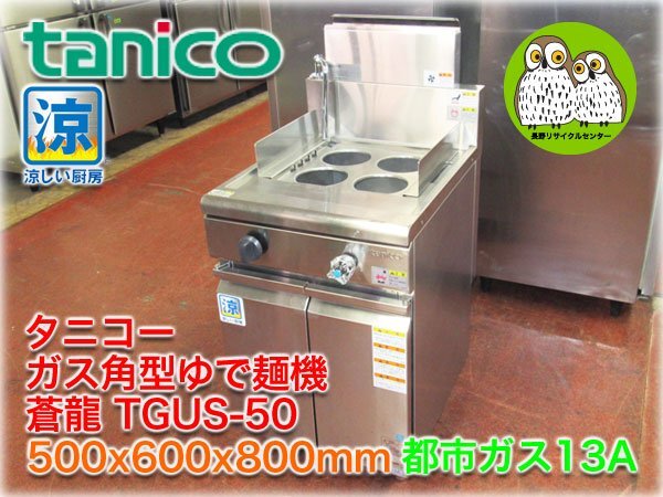 - タニコー ガス角型ゆで麺機 蒼龍 TGUS-50 500x600x800mm 都市ガス13A 4テボ 涼厨 低輻射型 tanico 【長野発】