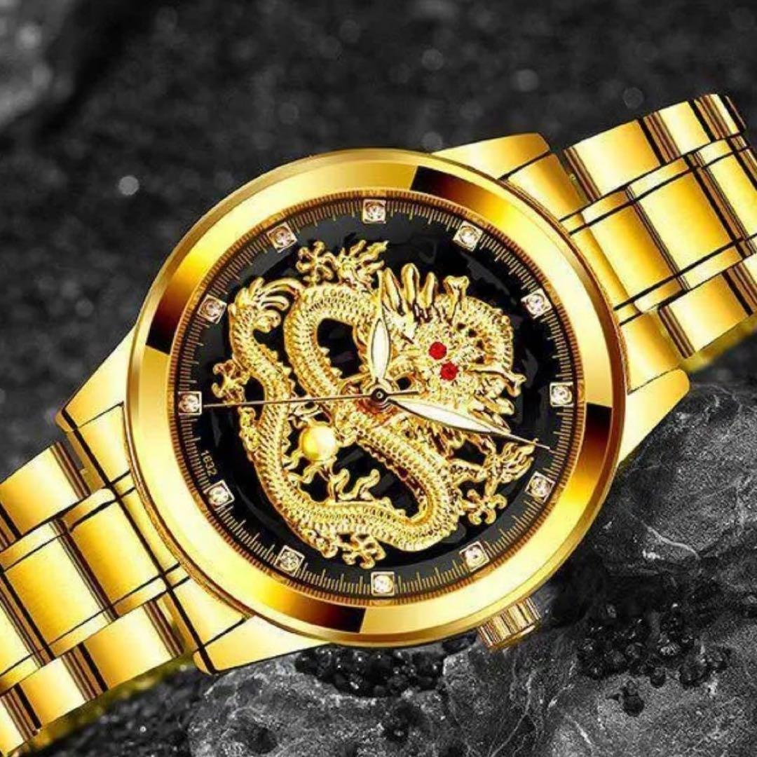 - ドラゴンスタイル腕時計 ラグジュアリー腕時計 メンズ ゴールド×ブラック