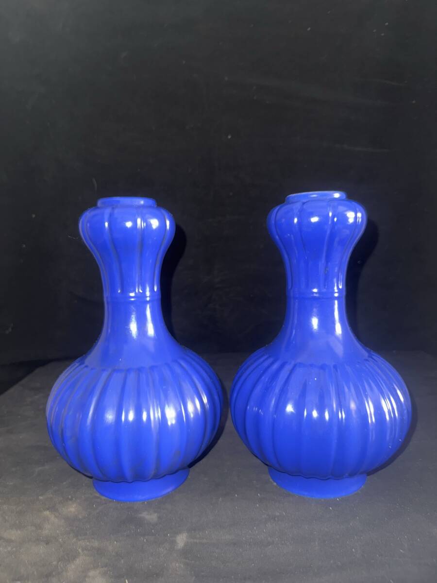 - 【超珍館蔵】清 雍正年制款 古陶瓷品 單色釉 霽藍 蒜頭瓶 陶藝 古賞物 古董品 古美術品 時代物 旧家蔵出 稀少珍蔵品