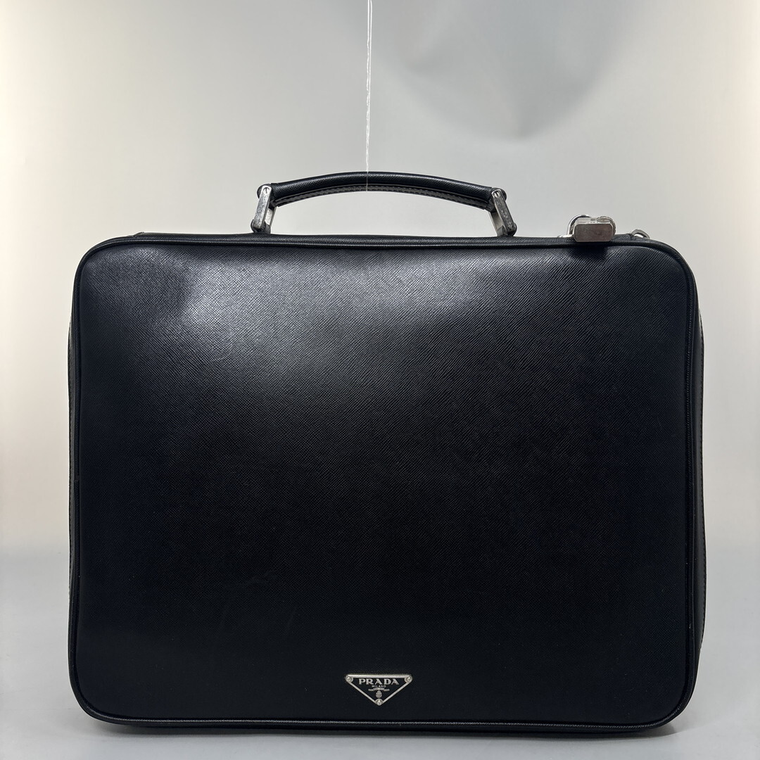 - 1円 極美品 PRADA プラダ ビジネスバッグ サフィアーノレザー 黒 A4可 2WAY メンズ ビジネスバッグ ブリーフケース ブラック 黒 南京錠有