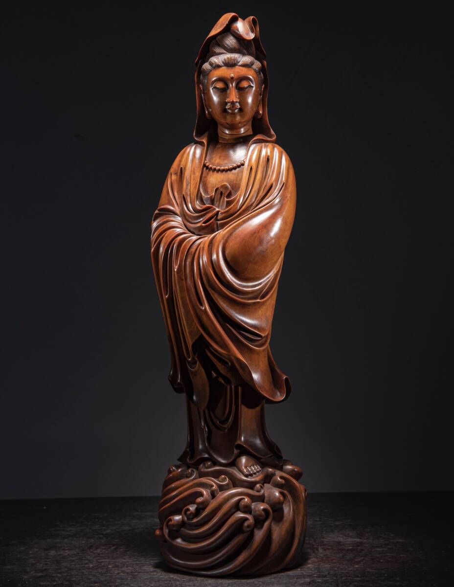 - 旧 清 黄楊木 精品観音 古家具 時代物 中国古美術 古賞物 古置物 唐物 S710
