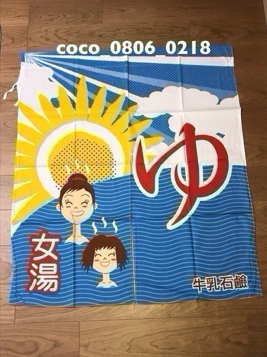 - ♪銭湯 のれん 牛乳石鹸 レトロ 長期保管 経年劣化あり ⑬ 女湯【未使用】ひまわり 雲