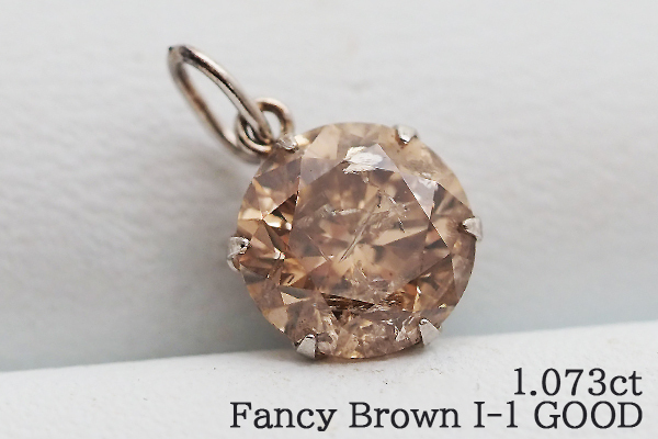 > 大粒!Pt900 プラチナ900 天然ダイヤモンド1.073ct ペンダントトップ ファンシーブラウン/I-1/GOOD 一粒ダイヤ チャーム ブラウンダイヤ