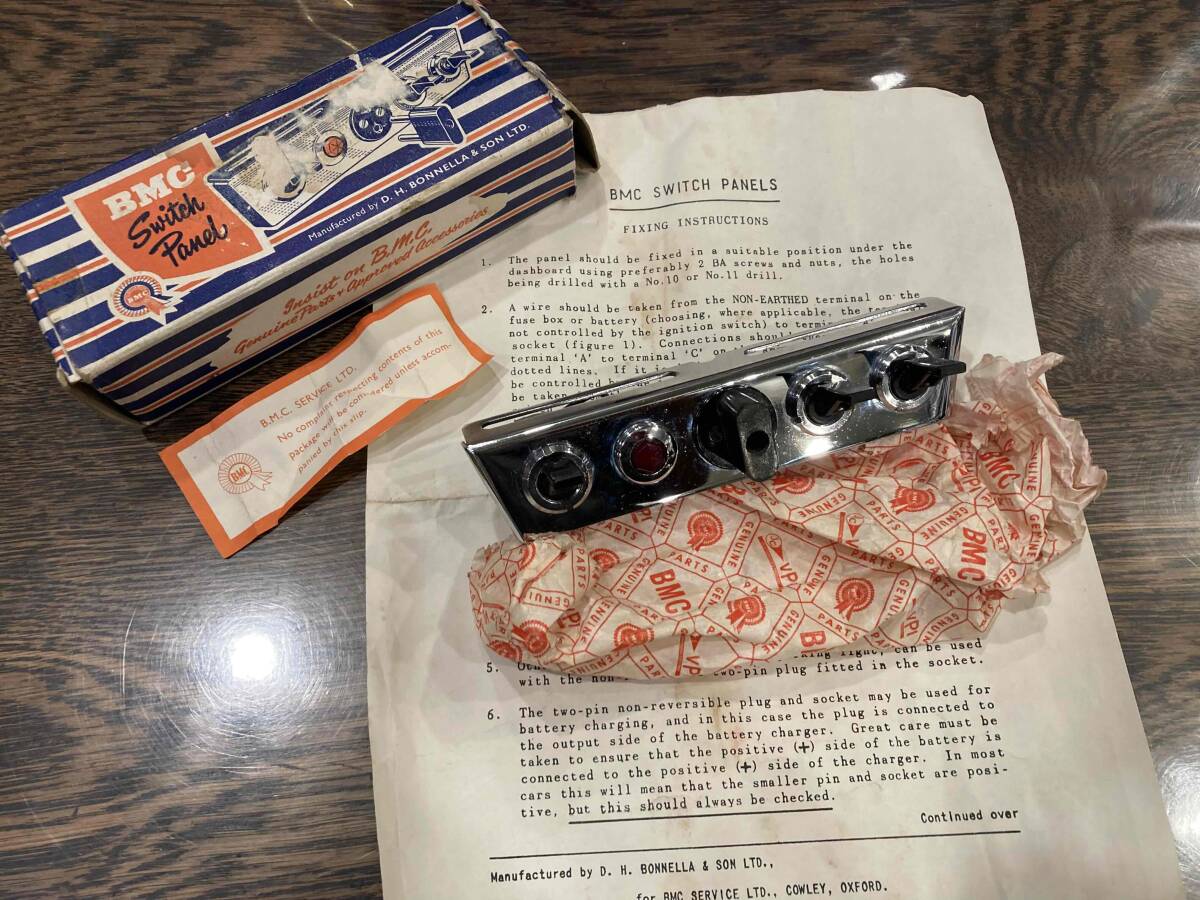 > BMC BMC ON/OFFトグルスイッチ、コンセントプラグ、レッドパイロットランプ付 クロームメッキスイッチステー ミニクーパー 英国車