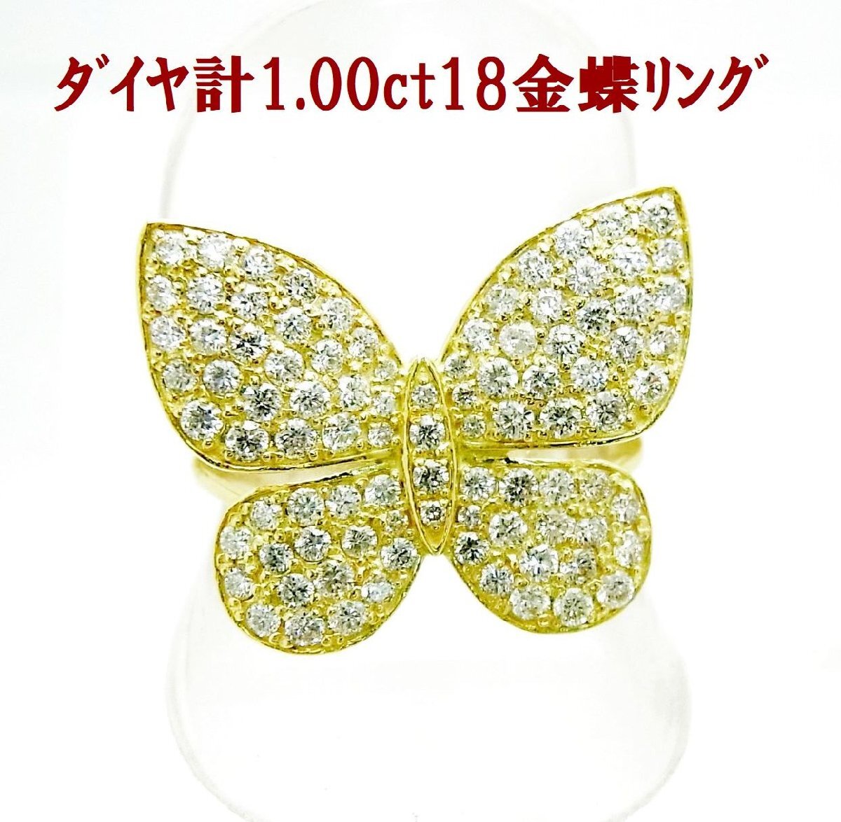 > 超上質天然ダイヤモンドが合計1.00ct入った 蝶々 バタフライ 18金製リング 卸価格 商品動画あり 送料込み