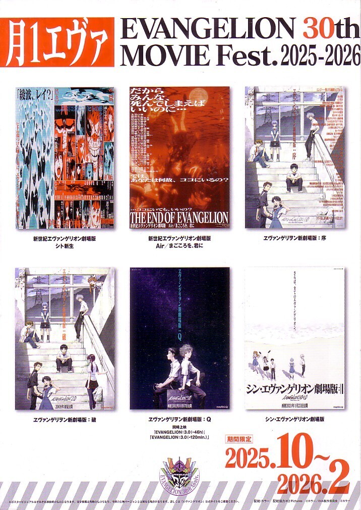 - 「新世紀エヴァンゲリオン 30th MOVIE Fest.2025-2026」の映画チラシです