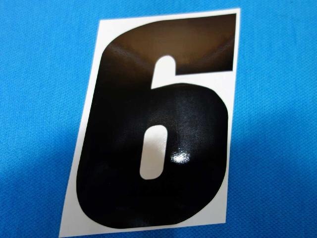 > 35129★BONSAIMOTO(ボンサイモト) ゼッケンステッカー中 「6」 3枚入り 高さ内110㎜×幅約68㎜~103㎜★