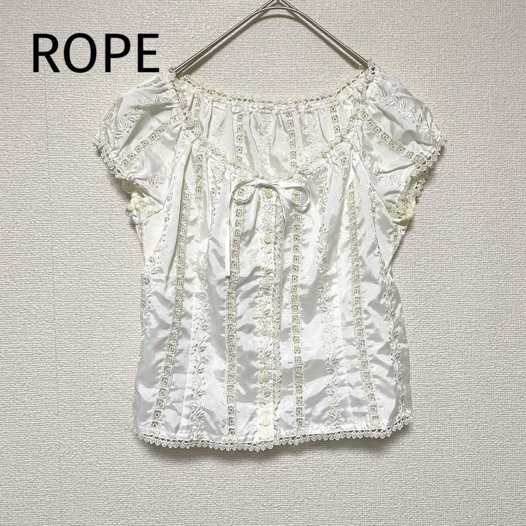 - zo299 ROPE ロペ/艶感ホワイトブラウス/レースカットソー/トップス
