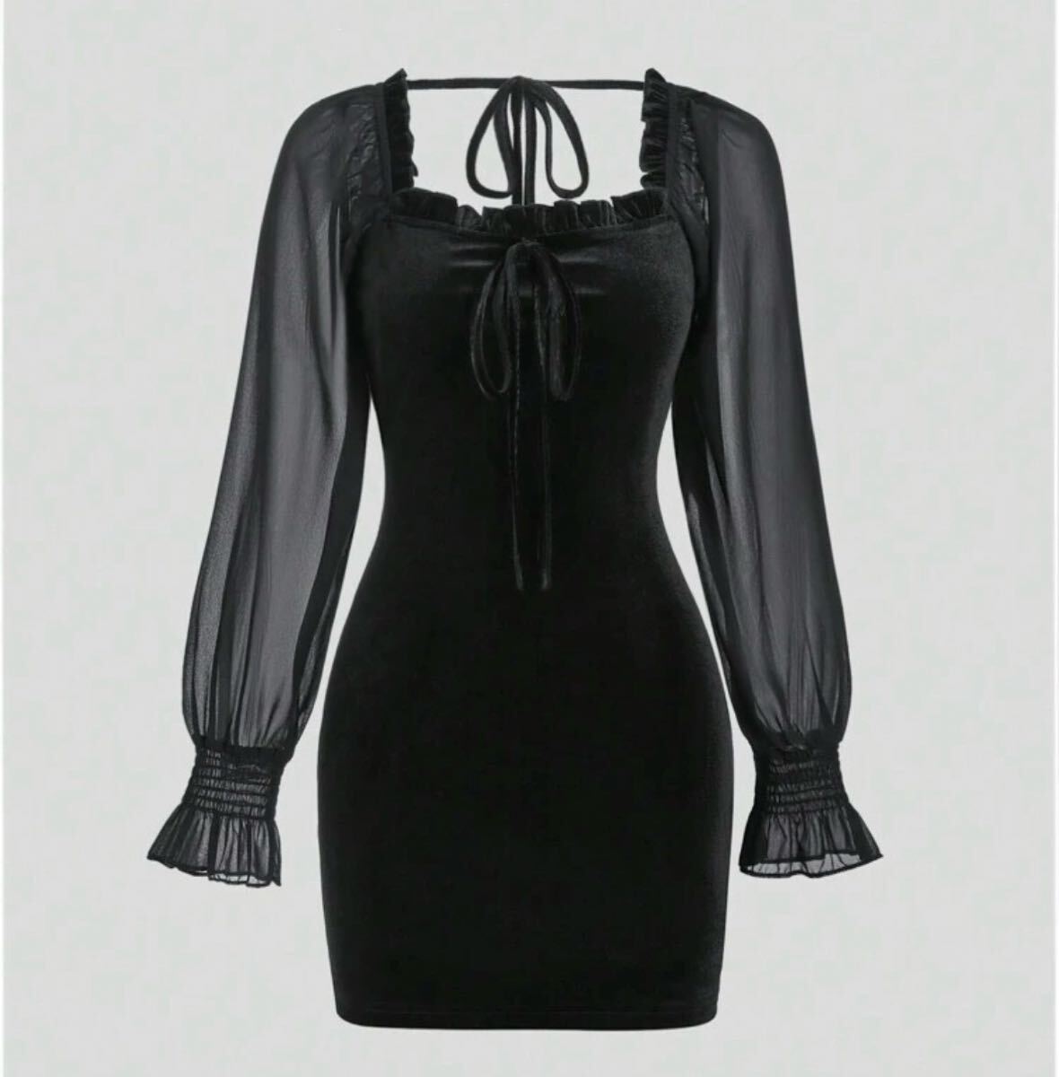 - Sweetra スクエアカラー ラッフルリボン 長袖ドレス コスプレ S 黒