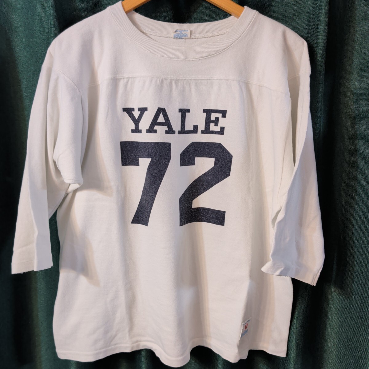 > チャンピオン true to archives YALE フットボールTシャツ XL バータグ 七分袖 Tシャツ 日本製 ucla リバースウィーブ スウェット